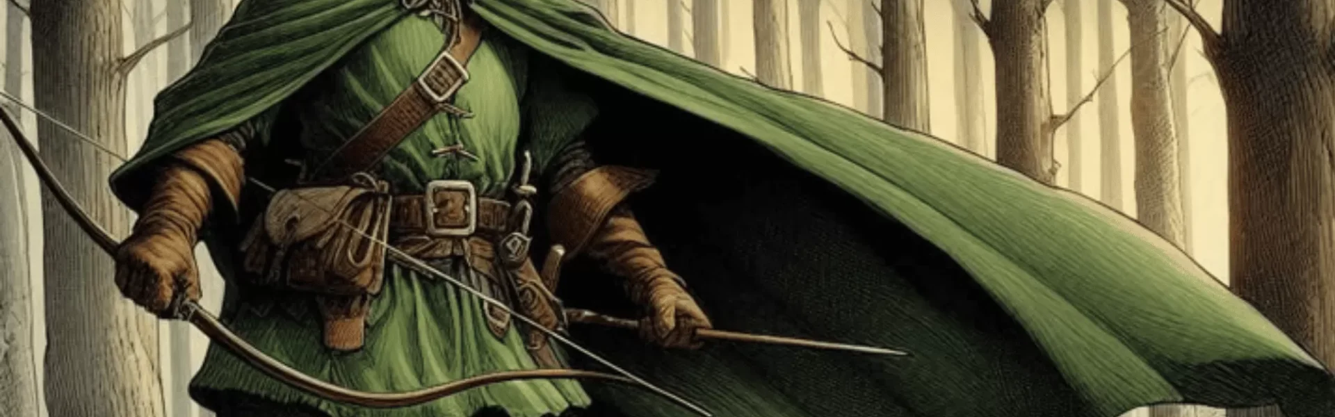 Menurut berbagai cerita, Robin Hood diyakini berasal dari seorang bangsawan yang kemudian menjadi pahlawan rakyat karena ketidakadilan yang dialaminya. Dalam kisahnya, ia memilih hidup di hutan Sherwood bersama kelompok bandit dan pemberontak yang membela rakyat kecil dari penindasan. Kemampuannya dalam memanah dikembangkan selama masa hidupnya sebagai pembela keadilan, dan keahlian tersebut menjadi bagian integral dari karakternya.